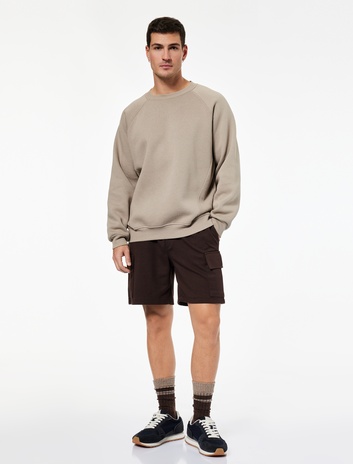 Cepli Detaylı Straight Fit Beli Lastikli Spor Şort