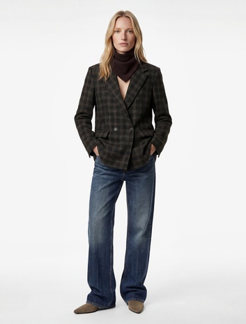 Koton X Melis Ağazat - Uzun Kollu Kruvaze Cepli Ekose Oversize Blazer Ceket Sepete Ekle