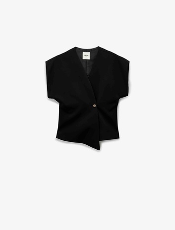 Kolsuz Metal Aksesuarlı Düğmeli Asimetrik Kruvaze Yaka Yelek Sepete Ekle