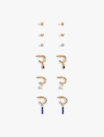 Top ve Halka Küpe Seti 6'lı Dokulu Taşlı Sepete Ekle