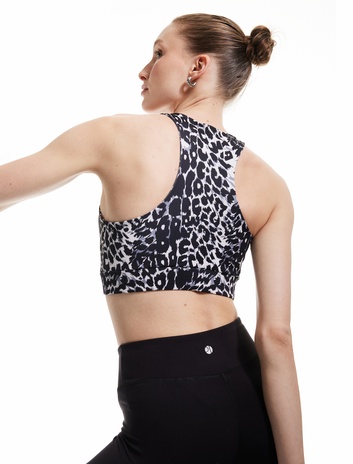 Leopar Desenli Kolsuz Bisiklet Yaka Sporcu Sütyeni