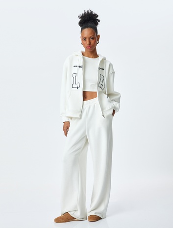 Beli Bağlamalı Yanları Şerit Detaylı Geniş Paça Eşofman Altı