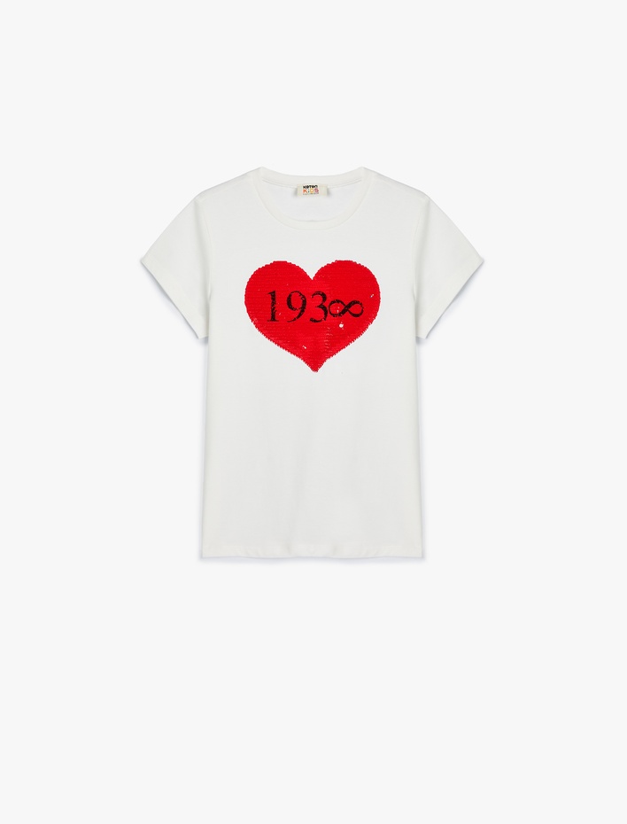 Kız Çocuk Atatürk Baskılı Tişört Pullu Payetli Bisiklet Yaka Kısa Kollu Pamuklu