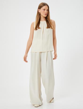 Kolsuz Pileli Bluz Yuvarlak Yaka Viskon Kumaş