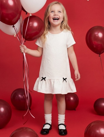 Fırfırlı elbiseler ya da tütü etekler çocukların hareketli ve eğlenceli kişiliklerini öne çıkarıyor. Düz renklerde kısa balon kollu elbiseler, bayram kutlamalarına masalsı bir hava katarken, ekoseli şort takımları da modern görünümler sunuyor. Atatürk baskılı tişört modelleriyle rahatlıkla kombinlenebilen bu parçalar, 23 Nisan ruhuna ve bayram heyecanına renk katıyor!