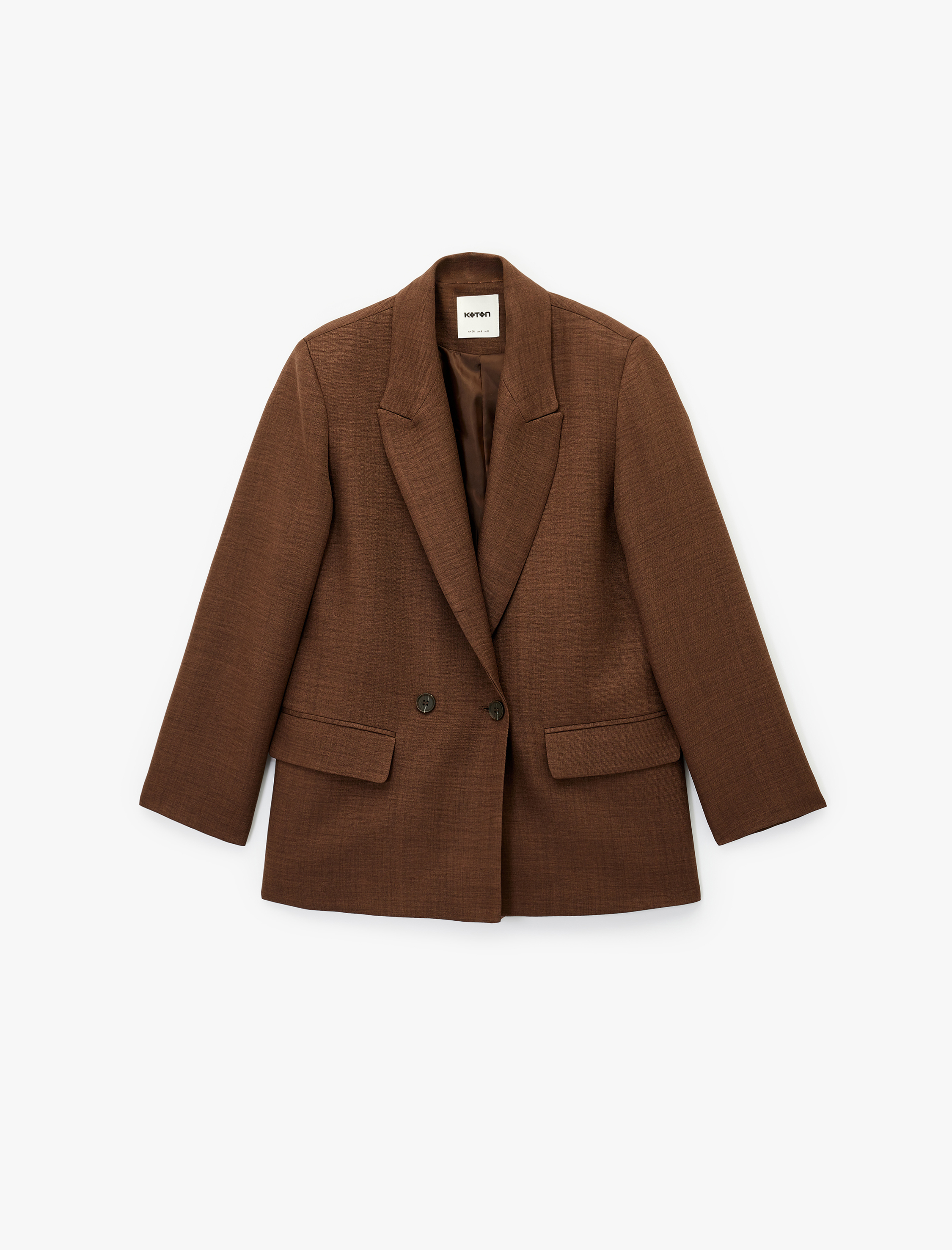 { "id": "8684846777252", "name": "3/4 Kollu Düğmeli Cep Detaylı Kruvaze Yaka Blazer Ceket", "taxonomy":["CITY FASHION","BUSINESS","WOMEN","BLAZERS","JACKETS"], "currency": "TRY", "unit_price": 1999.99 , "unit_sale_price": 1999.99 , "url": "https://www.koton.com/3-4-kollu-dugmeli-cep-detayli-kruvaze-yaka-blazer-ceket-kahve-4103692-1/", "stock": 5, "color": "KAHVERENGİ", "size": "38", "combine": "", "product_image_url": "https://ktnimg2.mncdn.com/products/2025/09/30/3138028/11b99b89-fe9e-4f81-b318-ccff057a831a.jpg" }