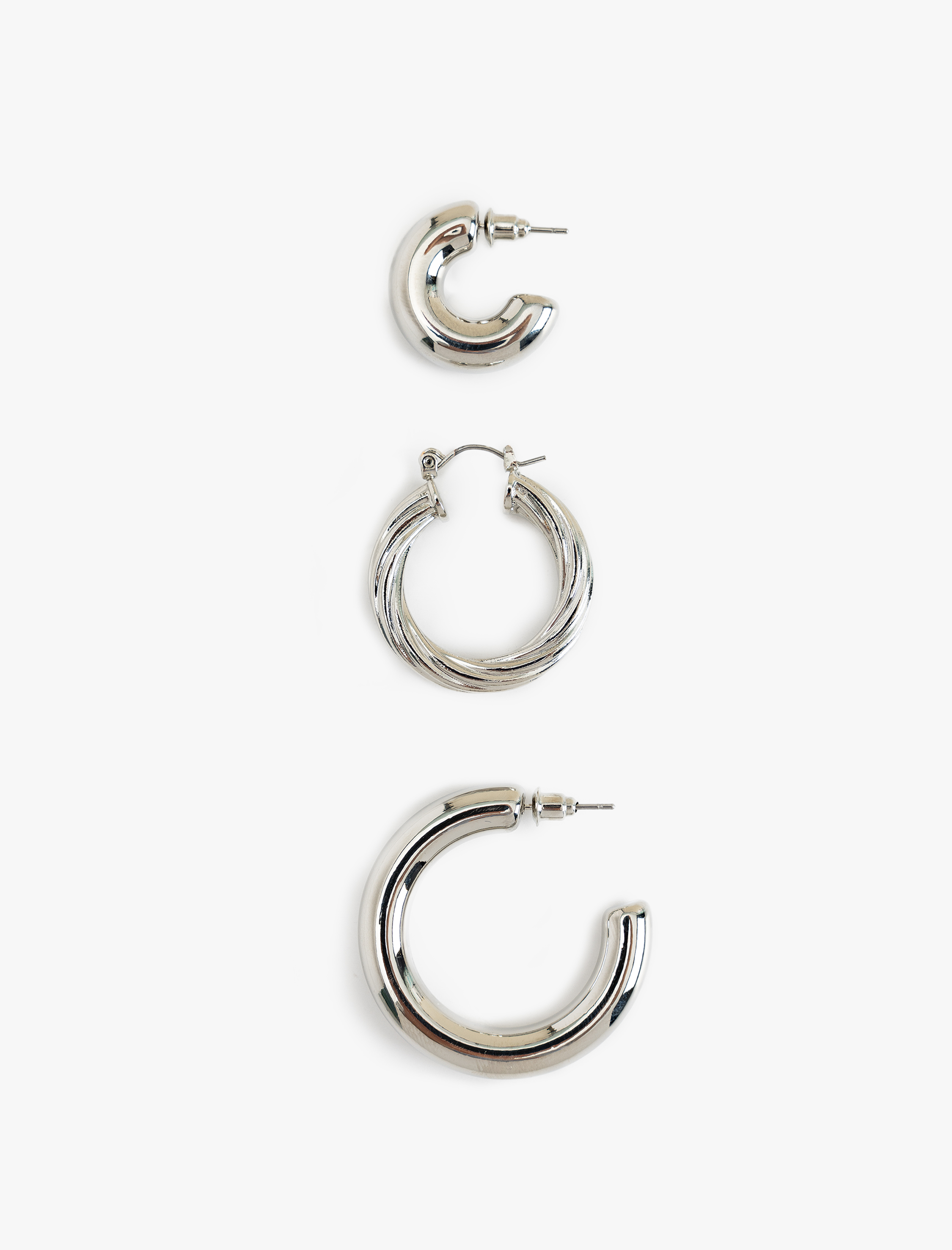 Kadın 3'lü Halka Küpe Seti  Kadın 3'lü Halka Küpe Seti  Kadın 3'lü Halka Küpe Seti