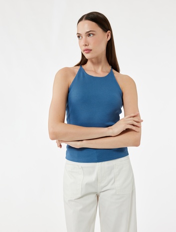 Pamuklu Sırt Detaylı Kolsuz Halter Yaka Bluz Sepete Ekle