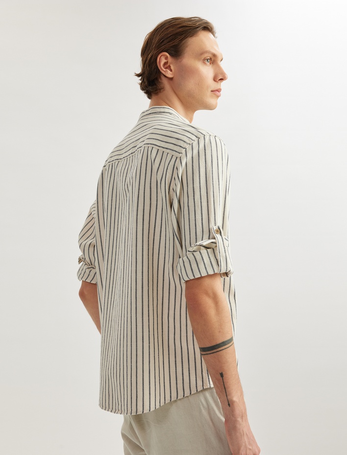 Pamuklu Çizgili Kıvırmalı Uzun Kollu Regular Fit Hakim Yaka Gömlek Sepete Ekle