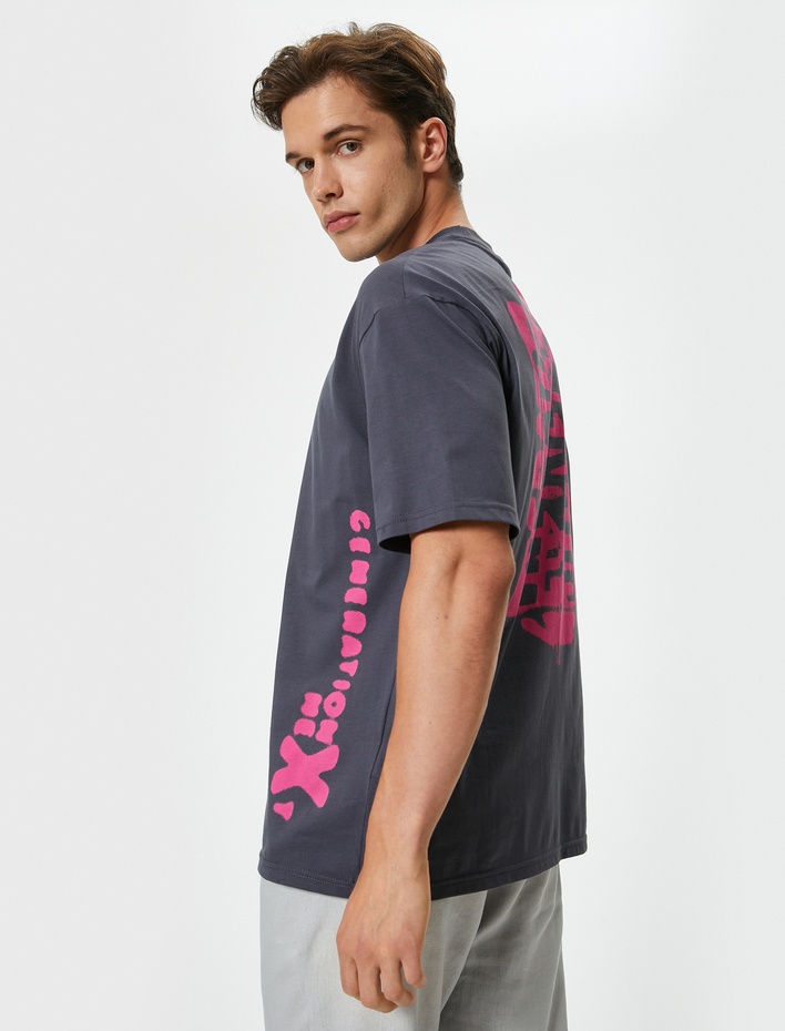 Slogan Baskılı Tişört Bisiklet Yaka Kısa Kollu Pamuklu