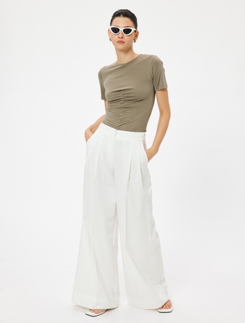 Drapeli Body Kısa Kollu Bisiklet Yaka Sepete Ekle