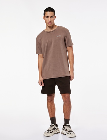 Regular Fit Kısa Kollu Dokulu Bisiklet Yaka Tişört Sepete Ekle