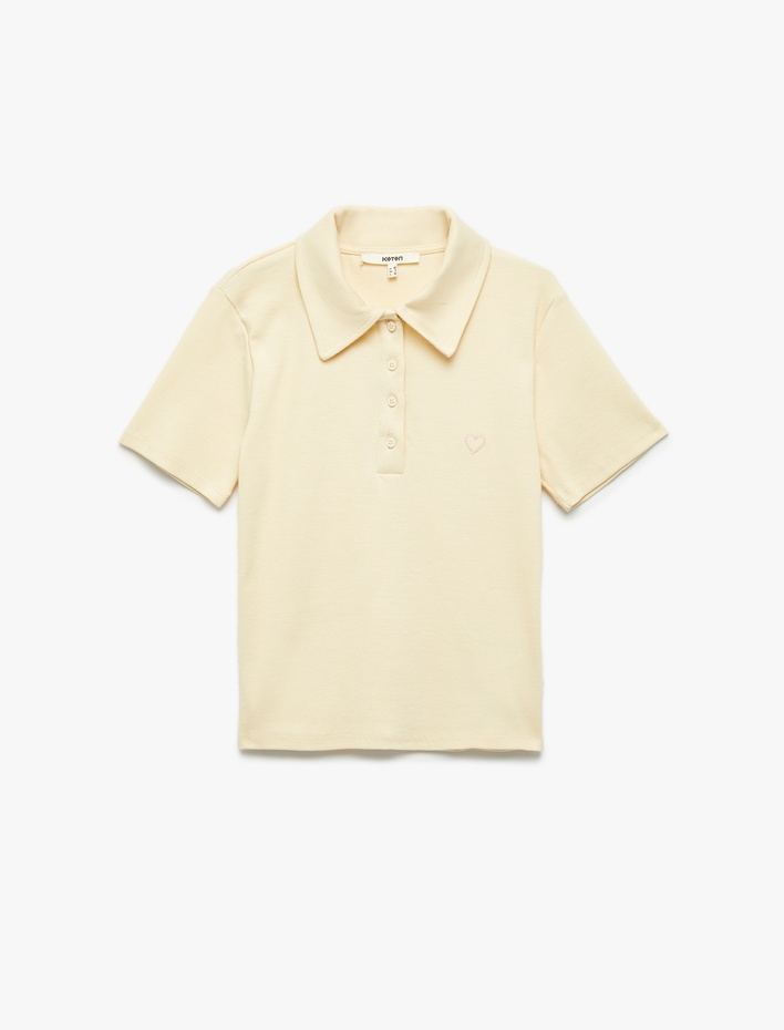 Pamuklu Slim Fit Kısa Kollu Düğmeli Kalpli Polo Yaka Tişört Sepete Ekle