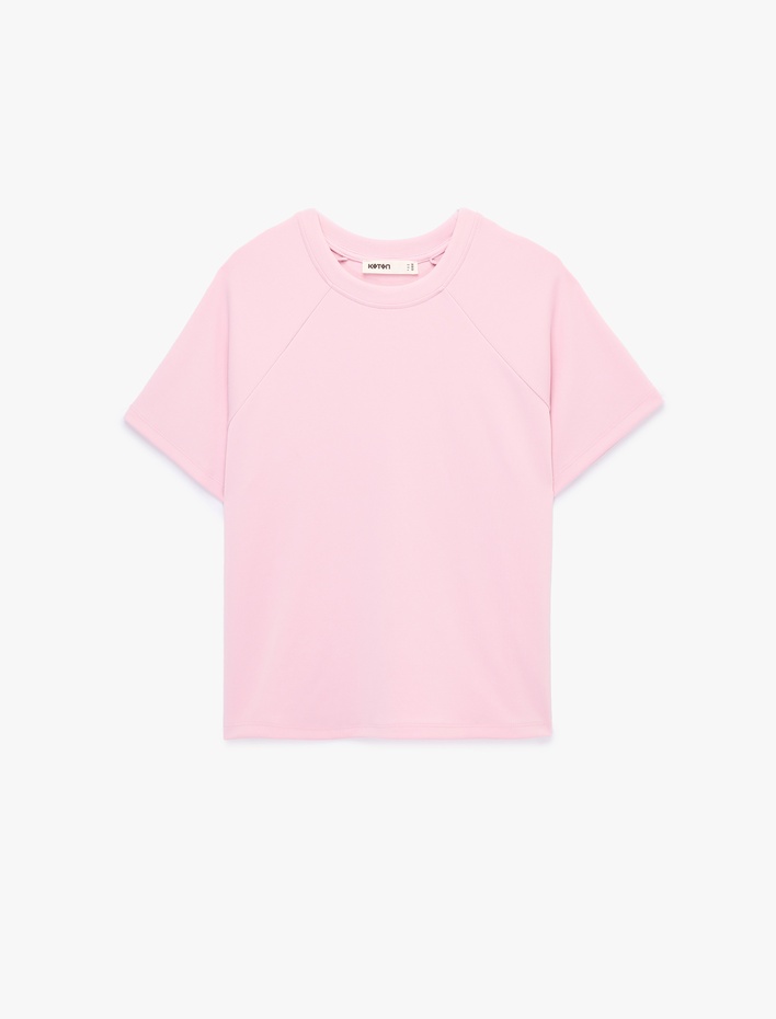 Pamuklu Pileli Bisiklet Yaka Kısa Kollu Tişört Sepete Ekle