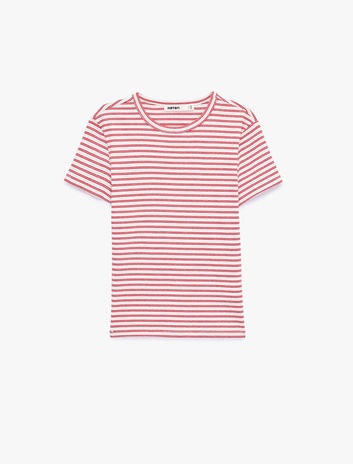 Kısa Kollu Bisiklet Yaka Pamuklu Çizgili Tişört Sepete Ekle
