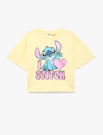 Pamuklu Kısa Kollu Bisiklet Yaka Lisanslı Stitch Baskılı Tişört Sepete Ekle