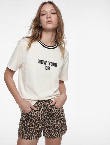 Leopar Nakış Detaylı Slim Fit Kısa Kollu Pamuklu Tişört