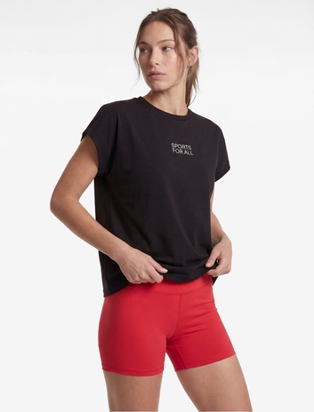 Yarım Kollu Bisiklet Yaka Baskılı Oversize Spor Tişört