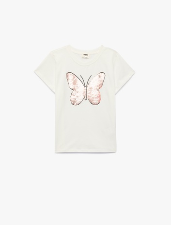 Pullu Payetli Kelebek Desenli Kısa Kollu Pamuklu Tişört Sepete Ekle