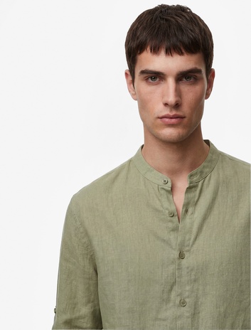 Regular Fit Uzun Kollu Düğmeli Hakim Yaka Keten Gömlek