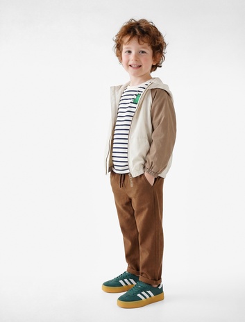 Erkek Bebek Cep Detaylı Pamuklu Şardonlu Kapşonlu Kolej Ceket