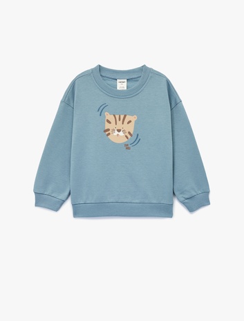 Erkek Bebek Pamuklu Uzun Kollu Bisiklet Yaka Kaplan Baskılı Oversize Sweatshirt