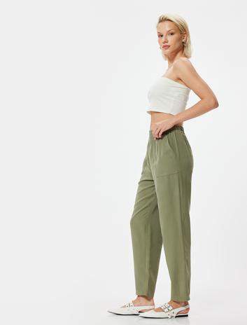 Havuç Kesim Pantolon Cepli Viskoz Kumaş