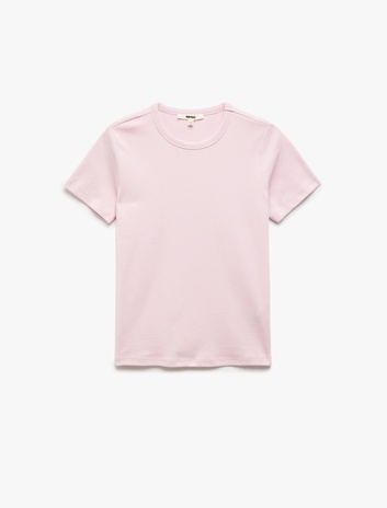 Crop Tişört Balon Form Skinny Kısa Kollu Yuvarlak Yaka Pamuklu