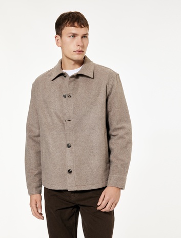 Cep Detaylı Uzun Kollu Gömlek Yaka Düğmeli Slim Fit Kaşe Ceket