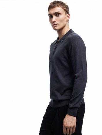 Uzun Kollu Düğmeli Polo Yaka Triko Kazak