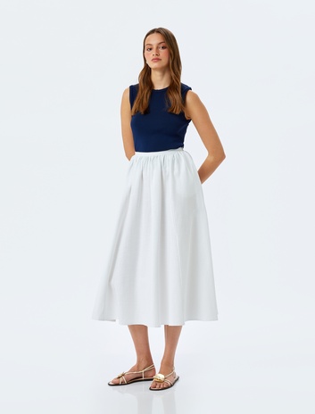 Beli Lastikli Pamuklu A Kesim Uzun Çan Etek Sepete Ekle