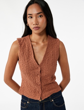 Bürümcük Kumaş Slim Fit V Yaka Düğmeli Yelek