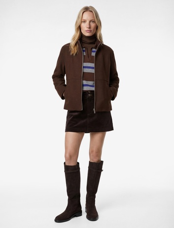 Uzun Kollu Fermuarlı Cepli Dik Yaka Kaşe Ceket