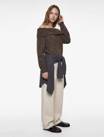 Uzun Kollu Omzu Açık Triko Kazak