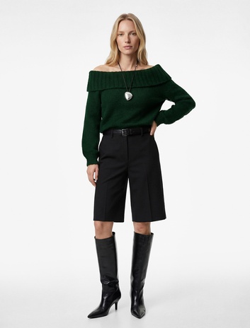Uzun Kollu Koyun Yünü Karışımlı Omzu Açık Triko Kazak