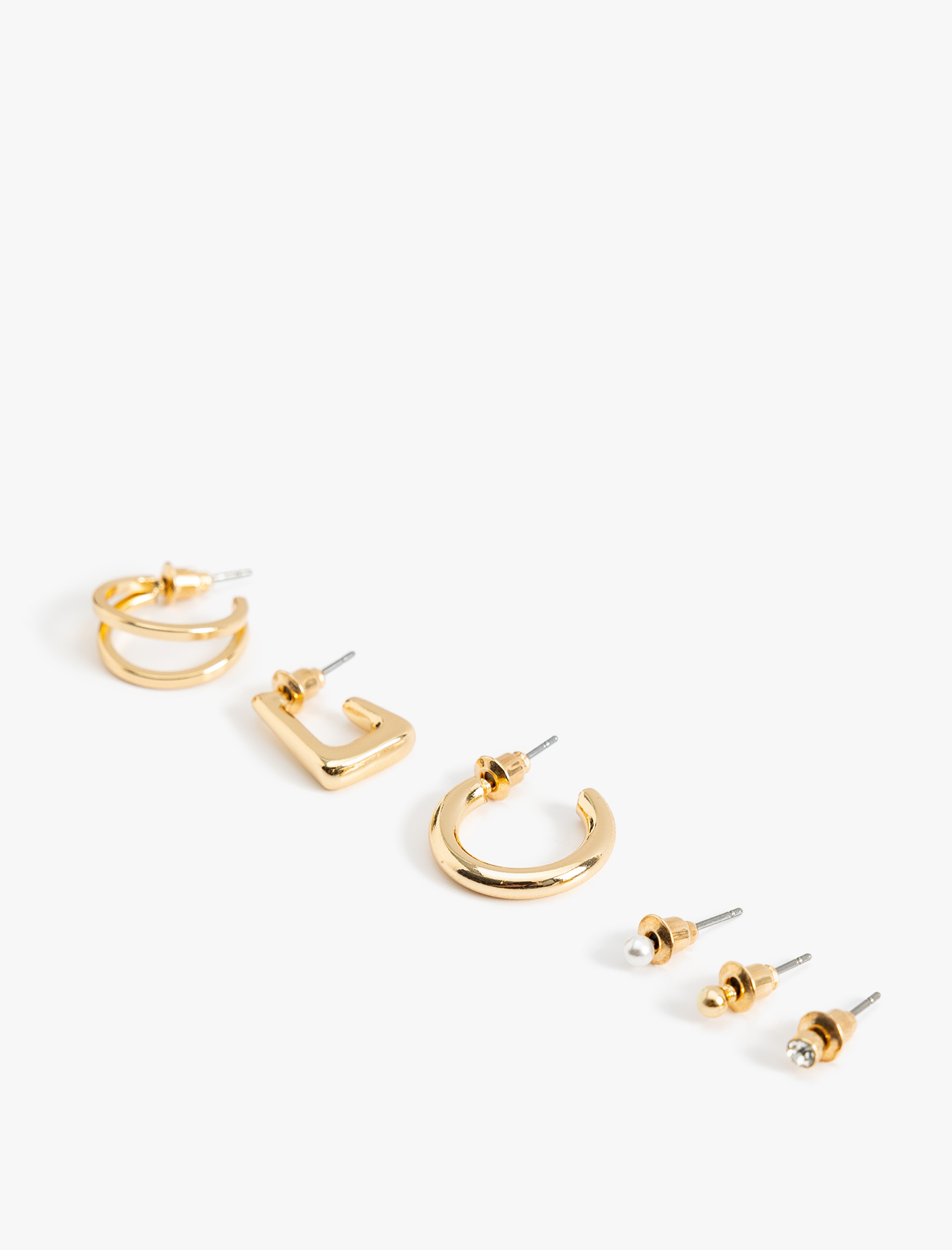 Kadın 6'lı Çelik Top ve Halka Küpe Seti  Kadın 6'lı Çelik Top ve Halka Küpe Seti  Kadın 6'lı Çelik Top ve Halka Küpe Seti