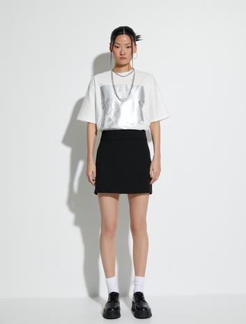 Metalik Baskılı Tişört Kısa Kollu Bisiklet Yaka Sepete Ekle