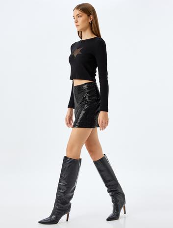 Pullu Payetli Mini Düşük Bel Slim Fit Etek Sepete Ekle