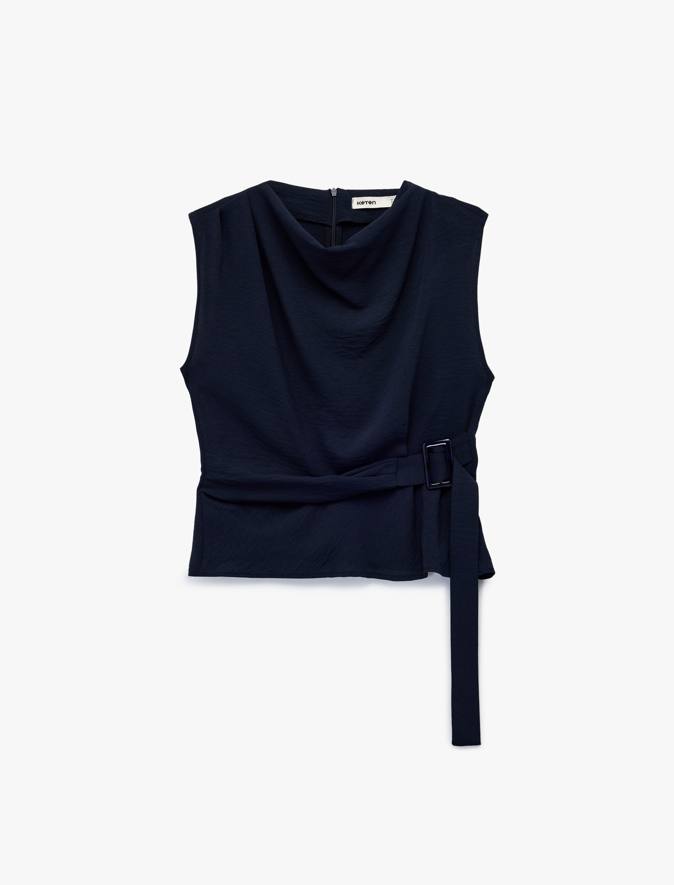 Aerobin Kumaş Kolsuz Degaje Yaka Kemer Detaylı Bluz