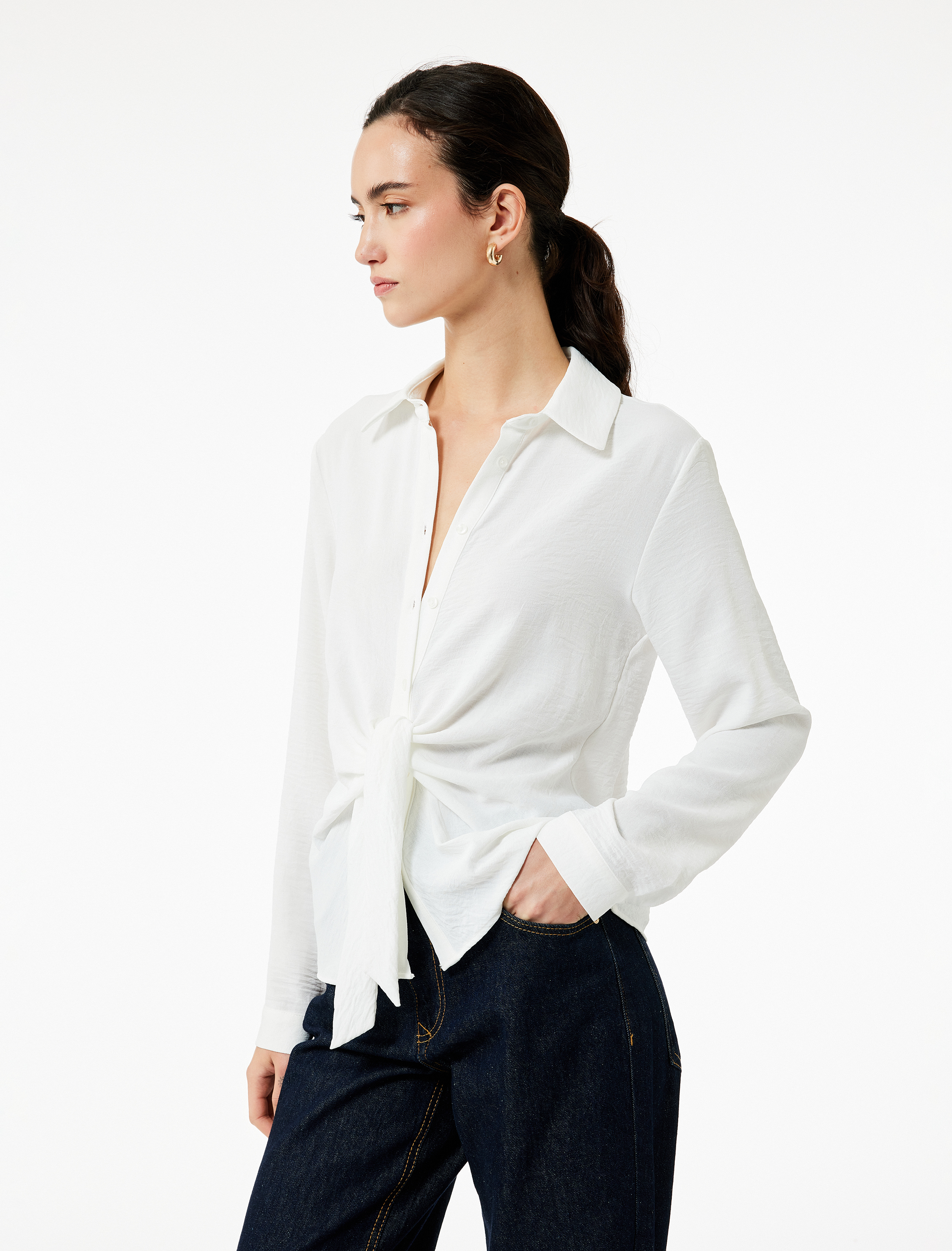 Aerobin Kumaş Önden Bağlama Detaylı Klasik Yaka Uzun Kollu Gömlek