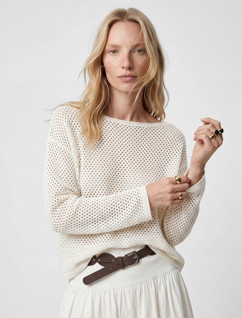 Oversize ve delikli crop kazak formlarıyla kullan ajurlu kazak modelleri, dar paça kot pantolonlar, kısa çizmeler ve makosen ayakkabılar ile tamamlanıyor konforlu bir görünüm yaratıyor.