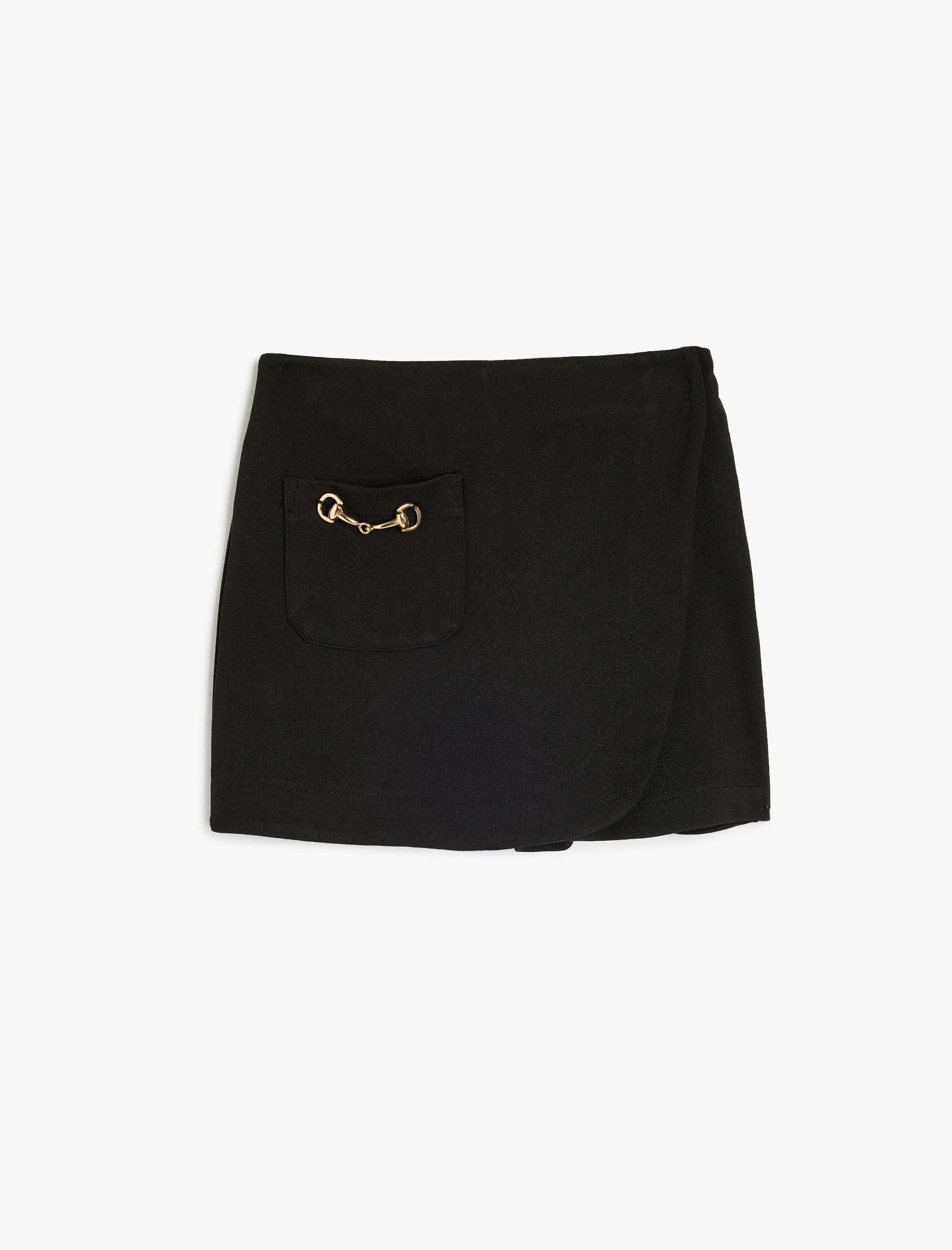 Kız Çocuk Aksesuar Detaylı Viskon Karışımlı Kruvaze Şort Etek