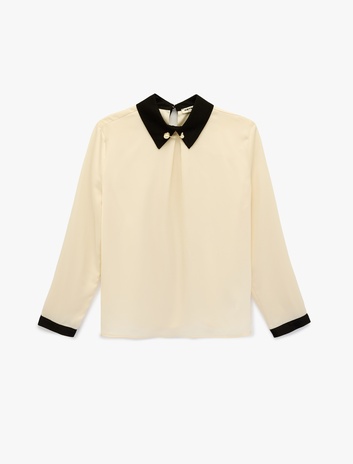 Yaka Detaylı Uzun Kollu Metal Aksesuarlı Gömlek Sepete Ekle