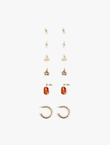 Taş Detaylı 6'lı Küpe Seti Sepete Ekle