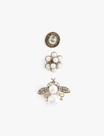 İncili Taşlı Arı Detaylı 3'lü Broş Seti Sepete Ekle