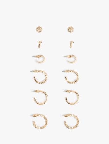 Taş Detaylı 12'li Küpe Seti Sepete Ekle