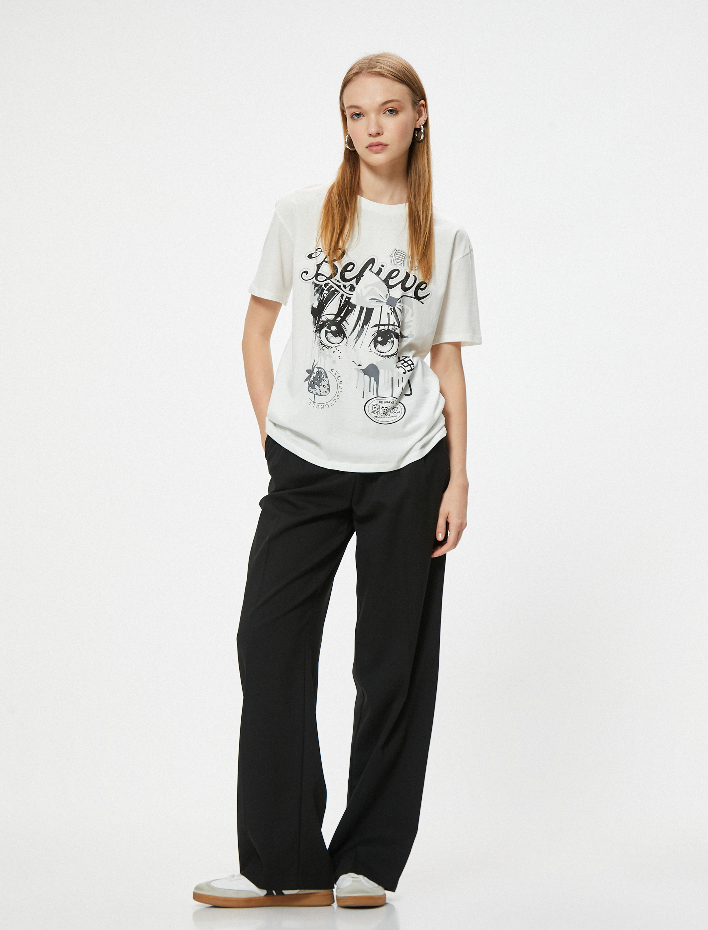 Anime Tişört Baskılı Kısa Kollu Bisiklet Yaka Relax Fit Pamuklu
