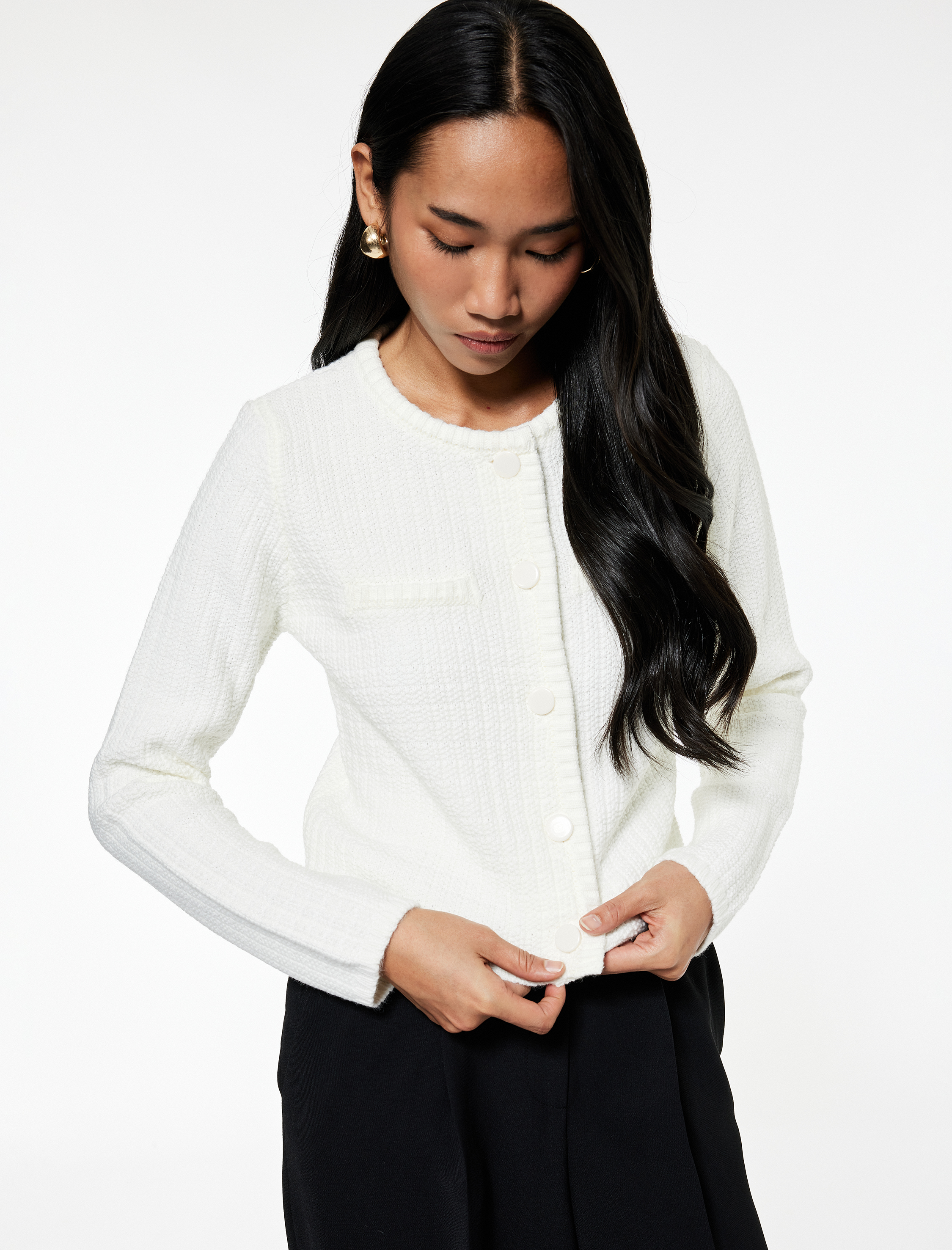 Aplike Detaylı Uzun Kollu Bisiklet Yaka Triko Hırka