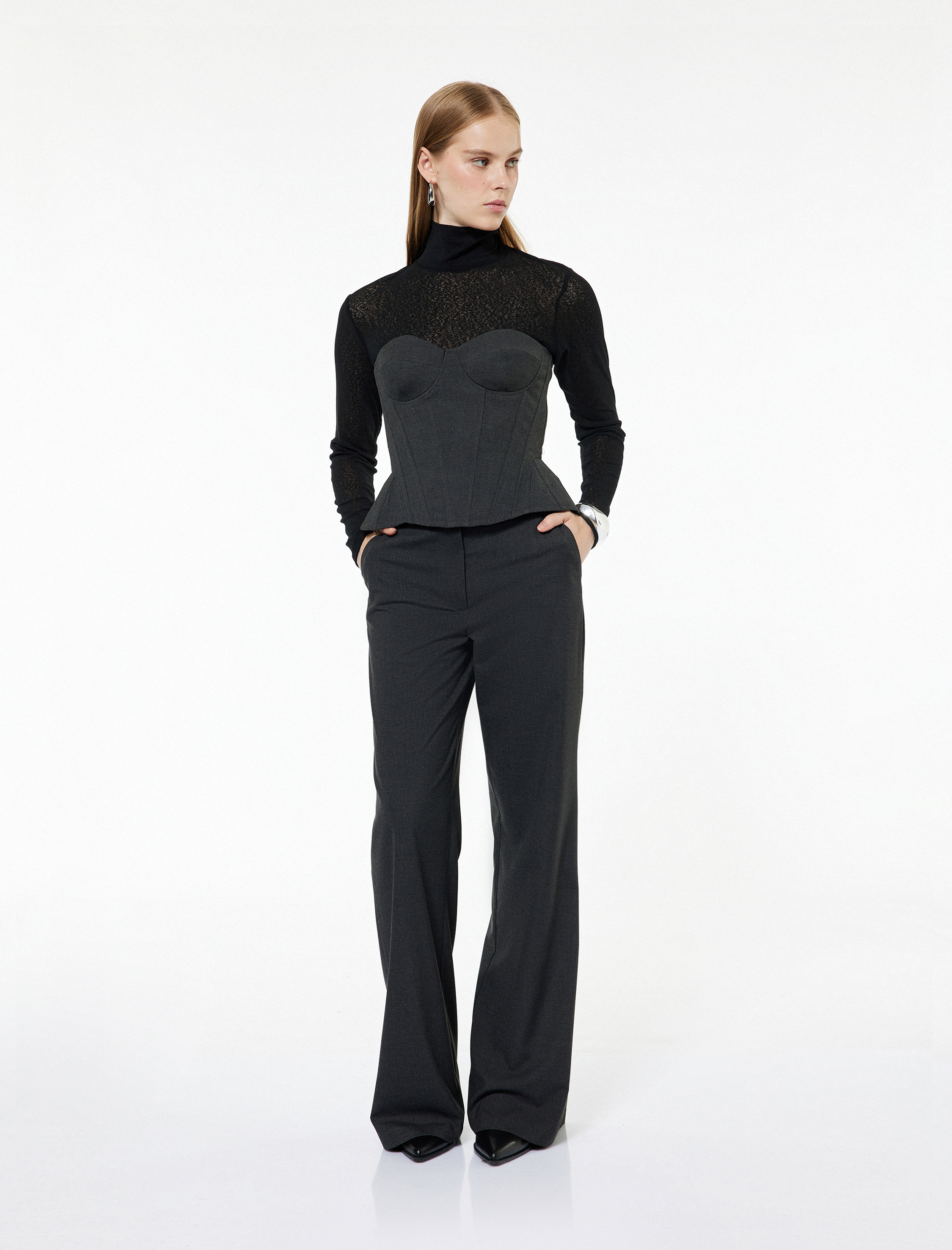 Arkadan Fermuarlı Korse Detaylı Straplez Üst