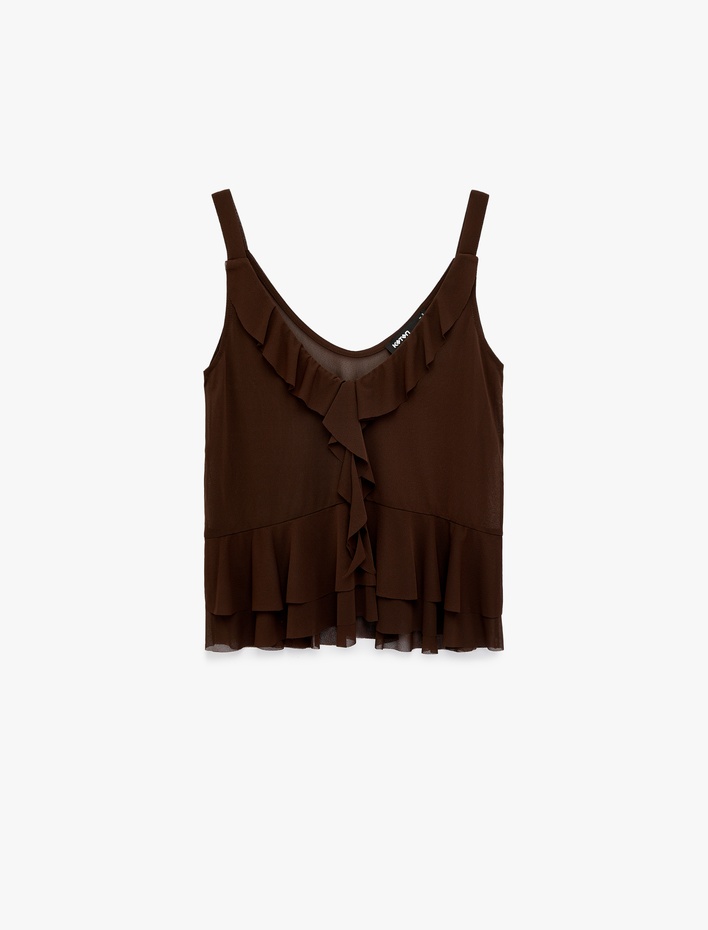 Volan Detaylı V Yaka Fırfırlı Askılı Bluz Sepete Ekle